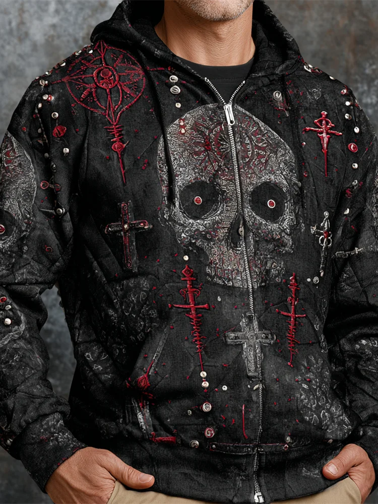 Dark Rock Skull Men's Patchwork Hoodie