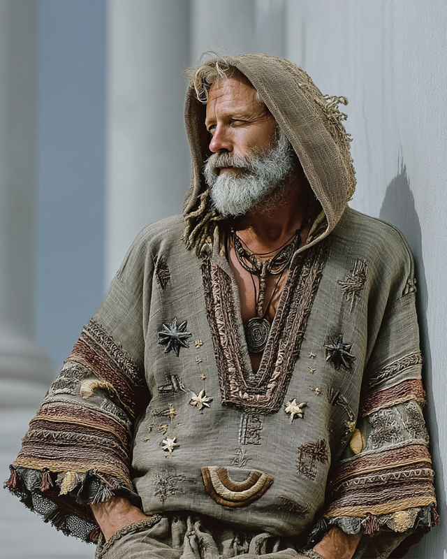 Men's 3D Star and Moon Embroidered Hooded Sweatshirt 624a