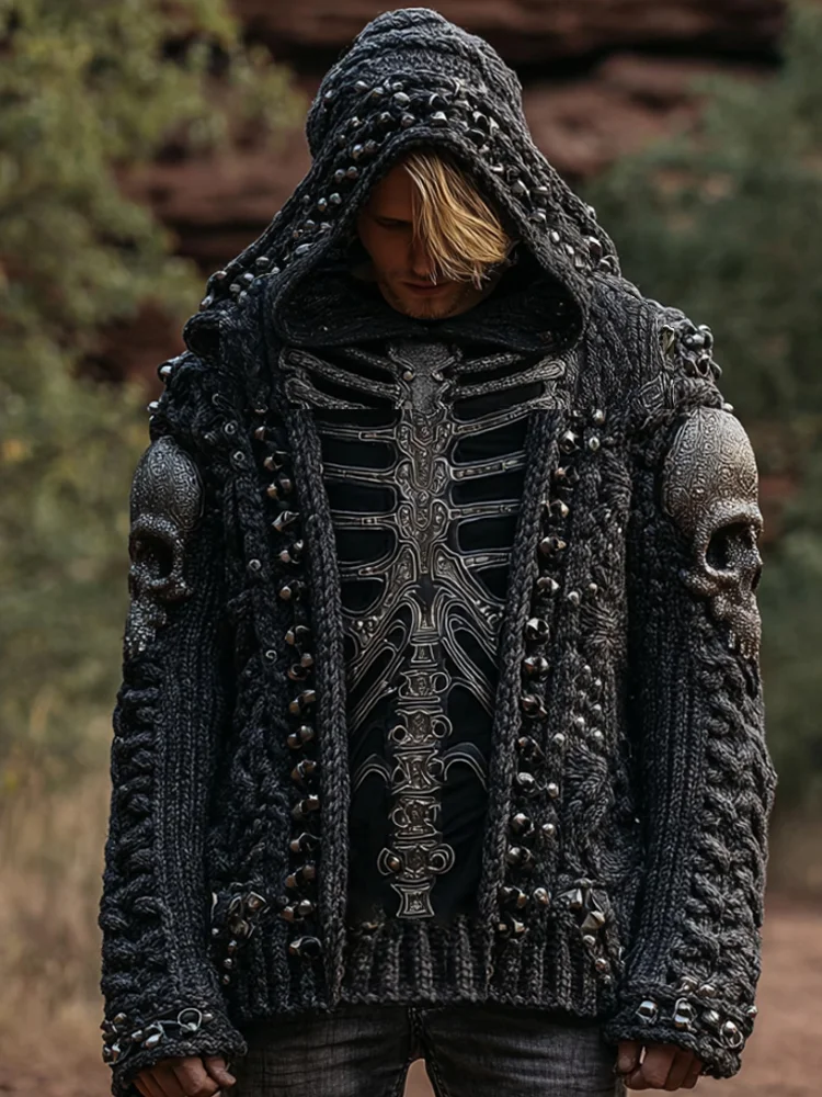 Men's Vintage Skeleton-design Mechanical Style Long-sleeved Hooded Sweater