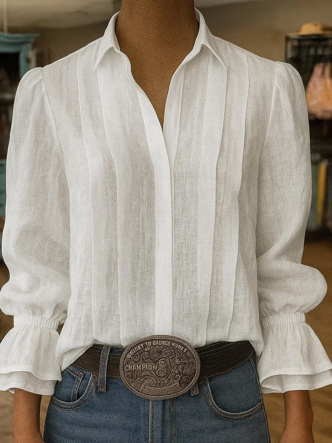 Long Sleeve V-neck Casual Beach Linen Shirt
