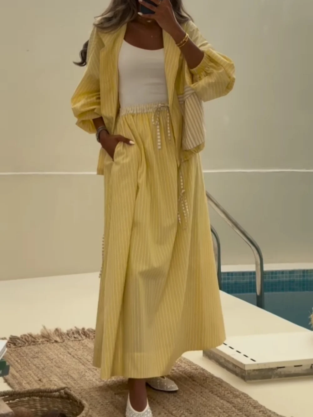 Yellow striped casual set